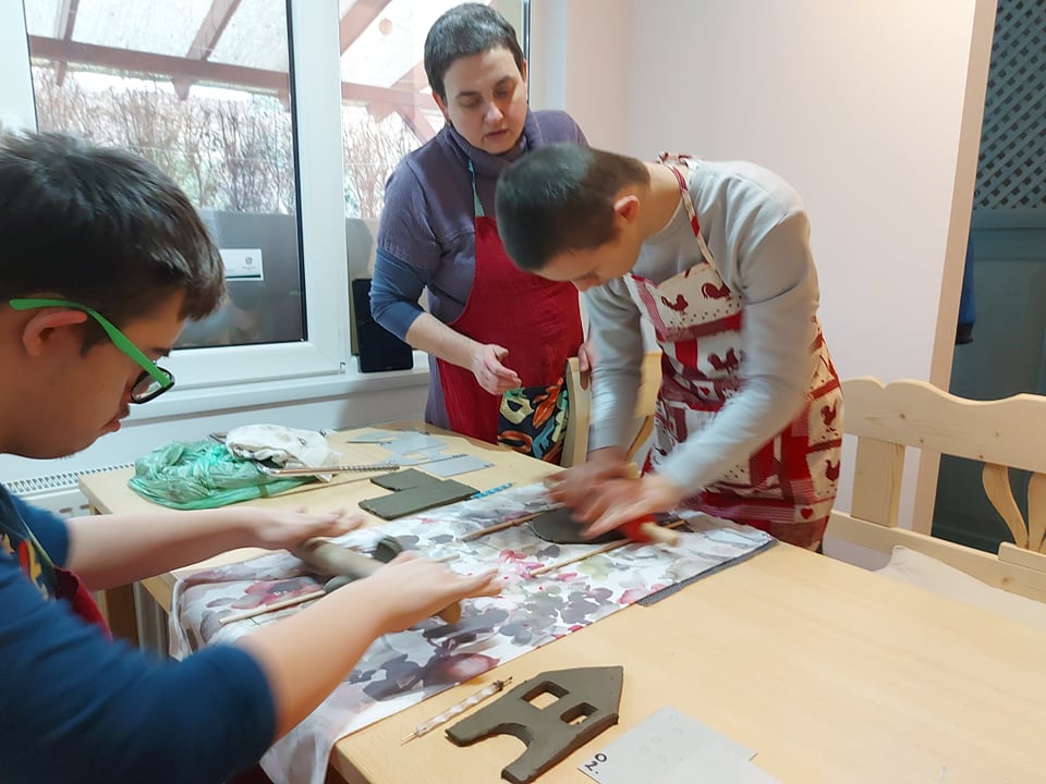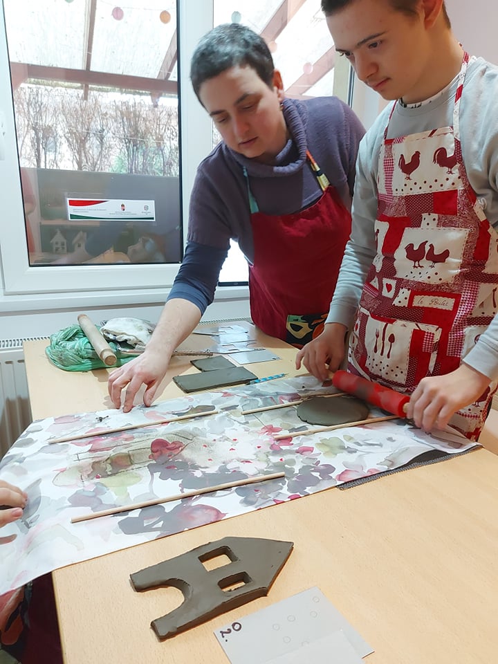 A kézműves tevékenységeken nagy szeretettel és odaadással vesznek részt 11-15 éves Down szindrómás gyerekek és fiatalok, akik ezáltal az életre szocializálódnak, megtanulva a mértékegységeket, azok gyakorlatba ültetését az általuk készített kézműves tárgyak által.